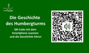 Auf unseren Informationstafeln am Bremerhof und am Turm kann die Geschichte des Humbergturms nachgelesen werden. Jetzt können sich Besucher die langjährige Turmgeschichte vor Ort auch anhören. Dazu wird zunächst ein QR-Code mit dem Smartphone gescannt. Anschließend kann die Audiodatei gestartet werden. Der Zuhörer erfährt innerhalb drei Minuten alles Wissenswerte über die wechselvolle Geschichte des Aussichtsturms von der ersten Idee bis heute.